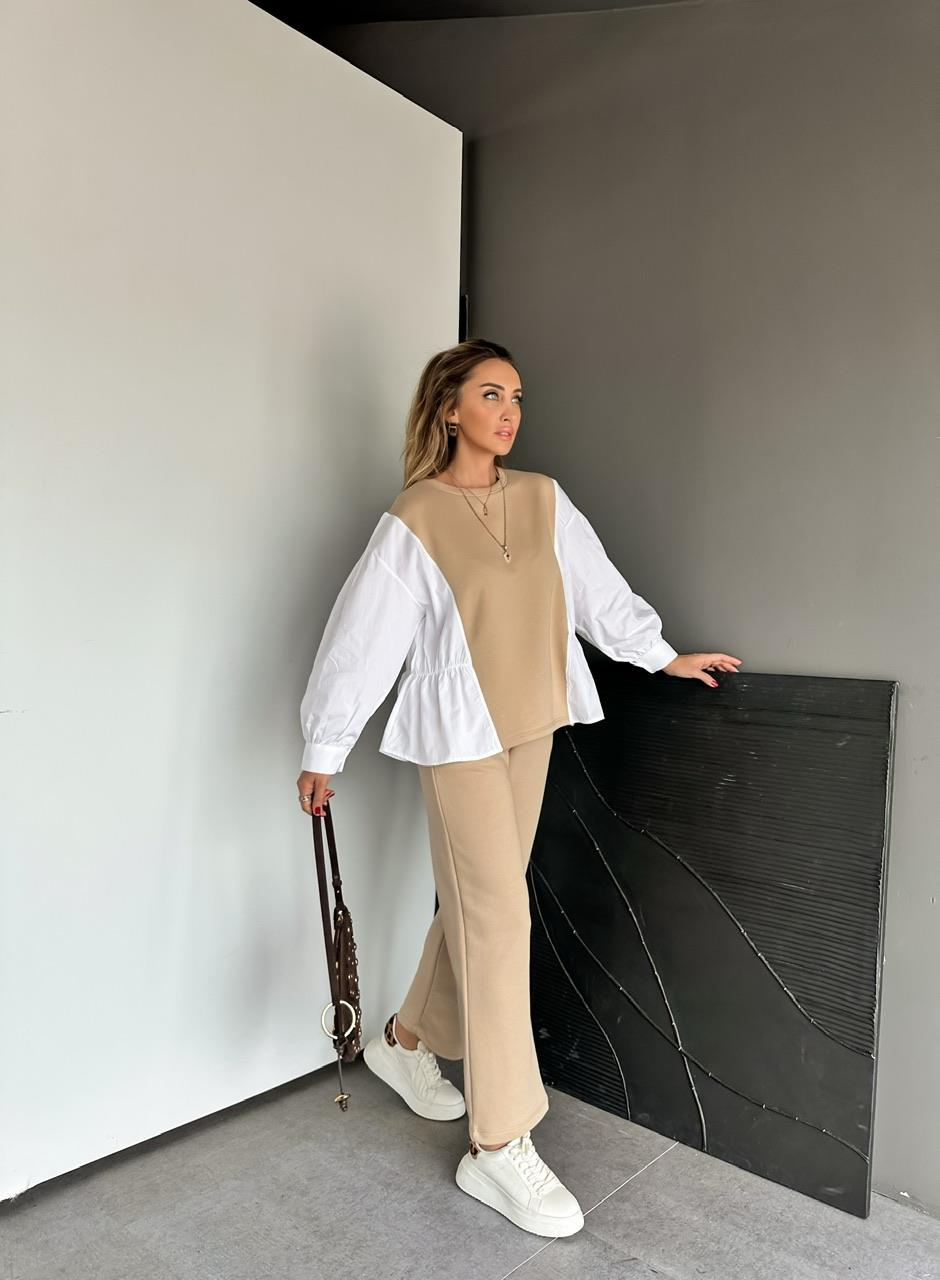 Bej Gömlek Detaylı Sweat Takım