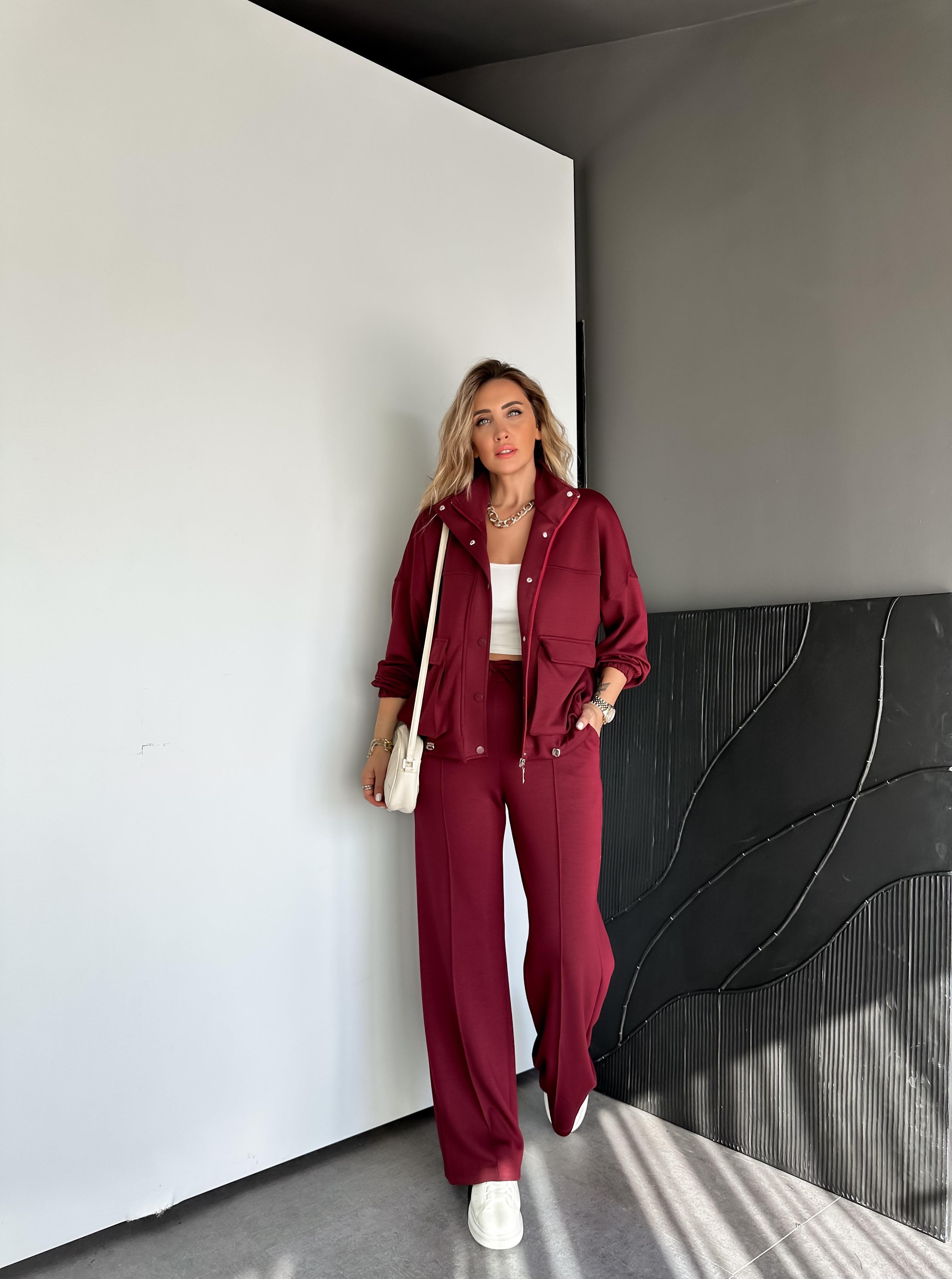 Bordo Beli Büzülebilir İpli Cepli Modal Takım