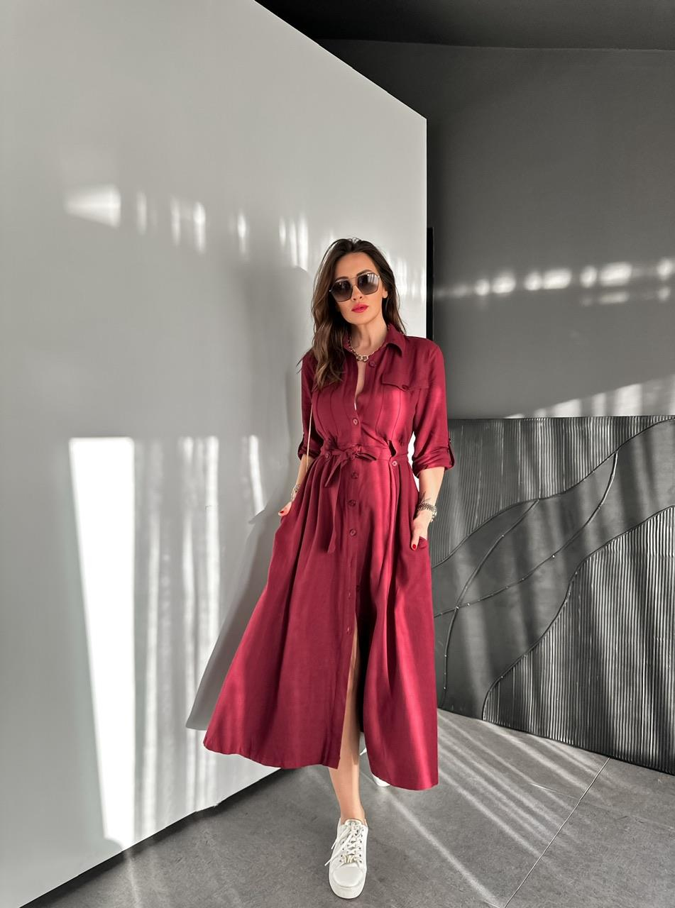 Bordo Kapak Cepli Düğmeli Safari Elbise
