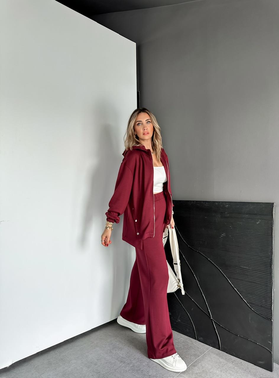 Bordo Kapşonlu Cıtcıtlı Modal Takım
