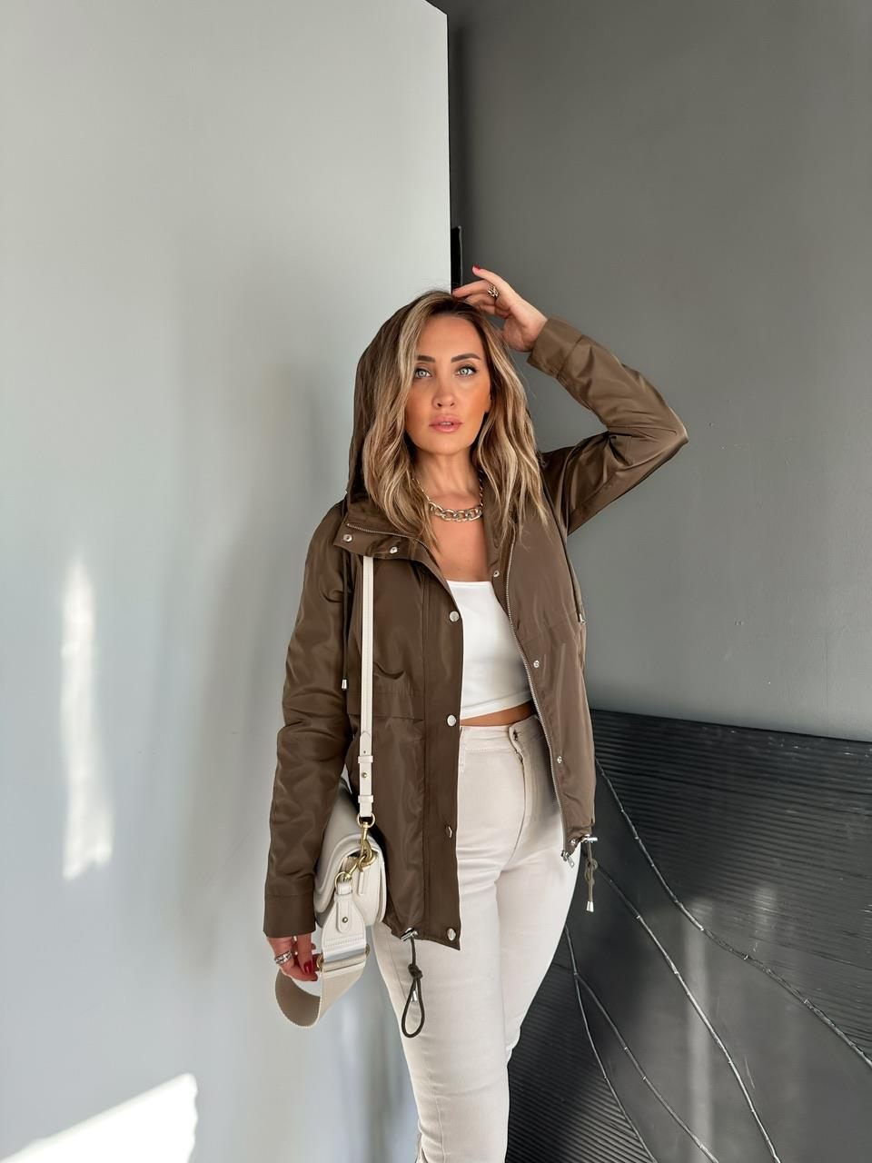 Kahve Cıtcıtlı Kapşonlu Yağmurluk