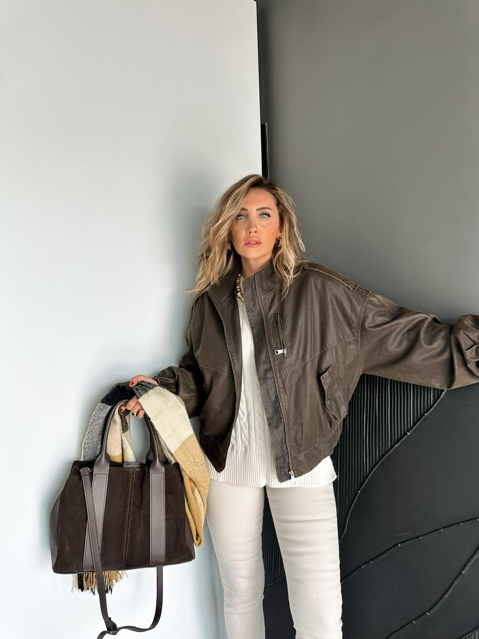 Kahve Taşlanmış Premium Bomber Ceket