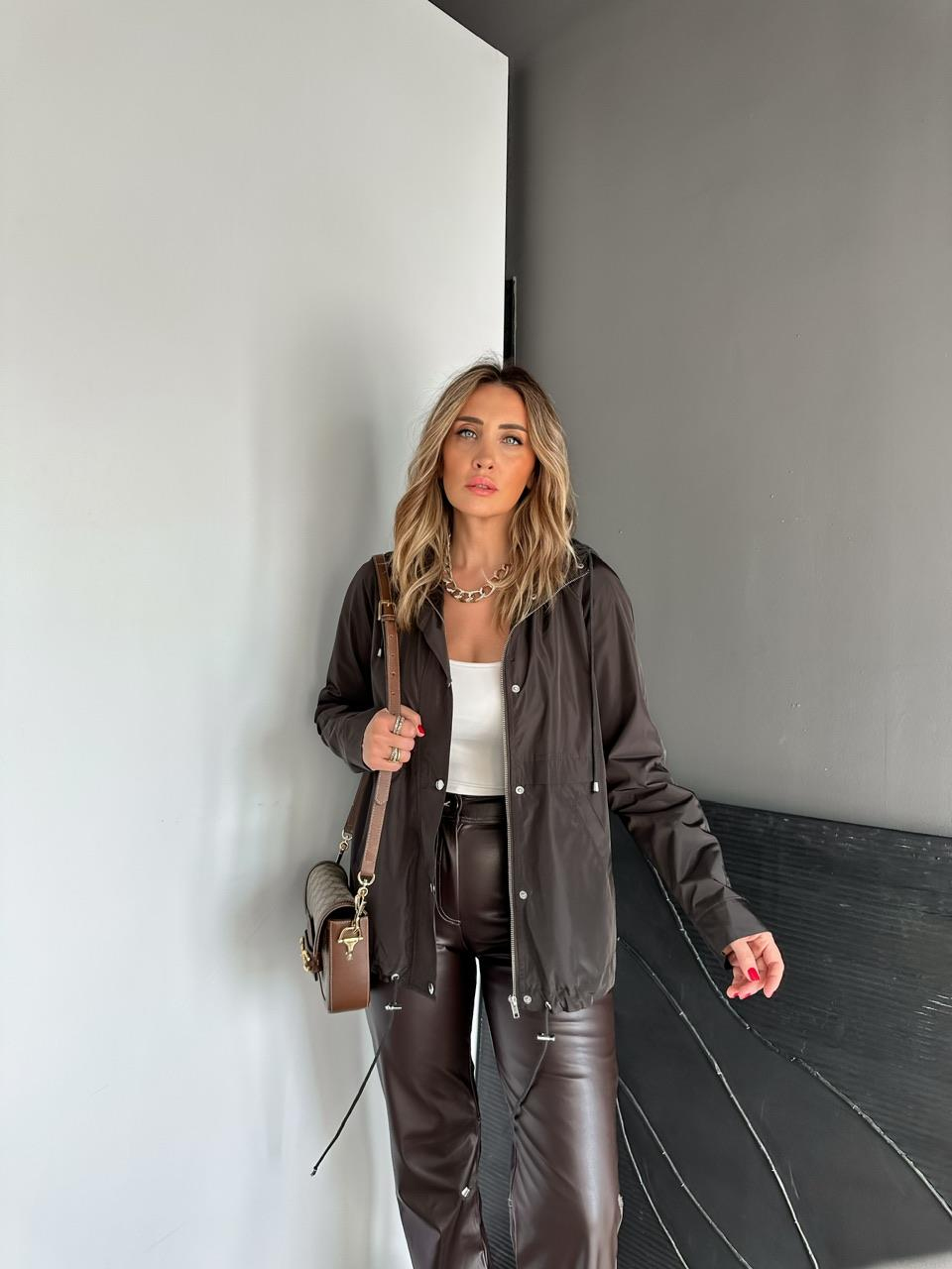 Koyu Kahve Cıtcıtlı Kapşonlu Yağmurluk