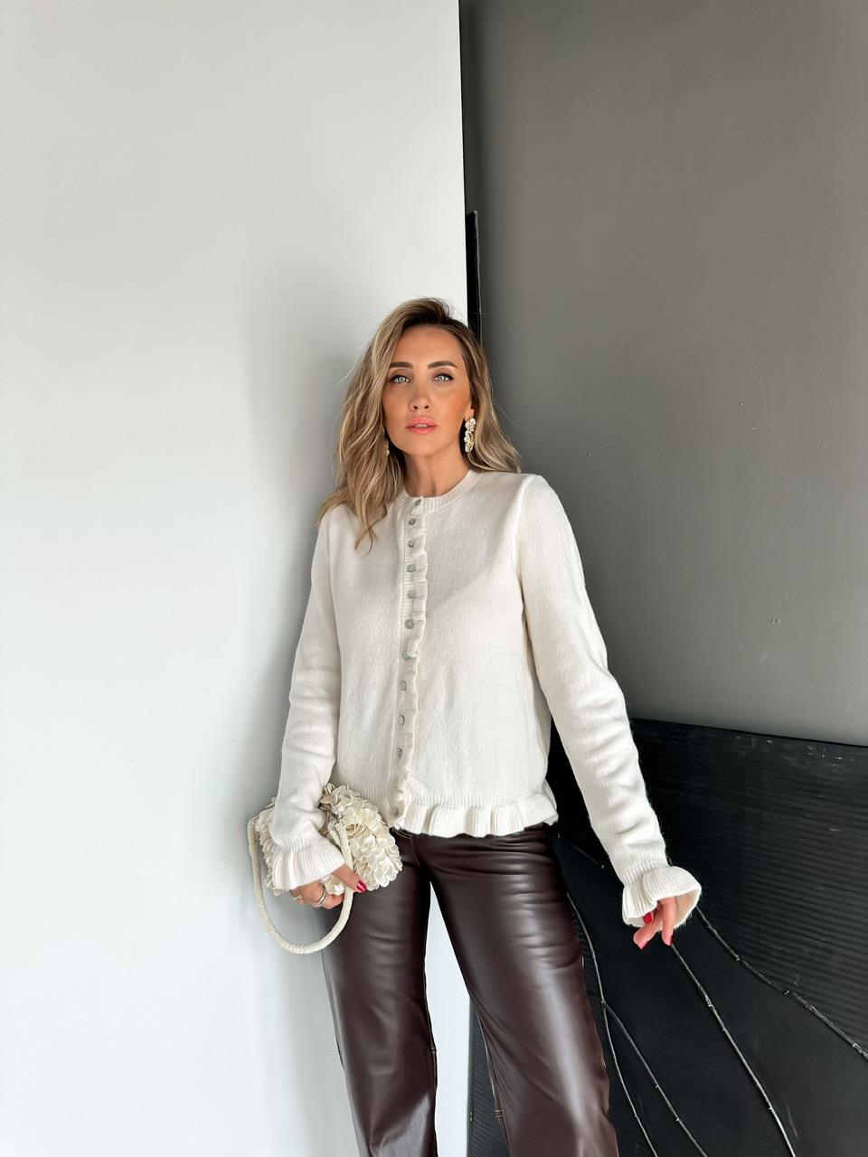 Krem Fırfır Detaylı Hırka