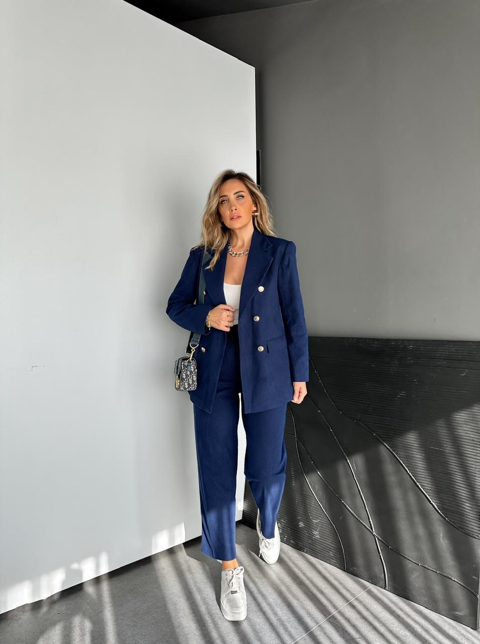 Lacivert Ceket Pantolon Fitilli Kadife Takım