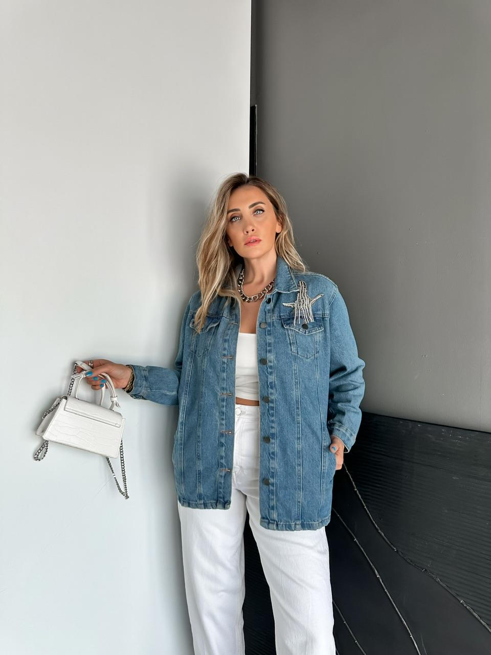 Mavi Kuş Aksesuarlı Marka Model Kot Ceket