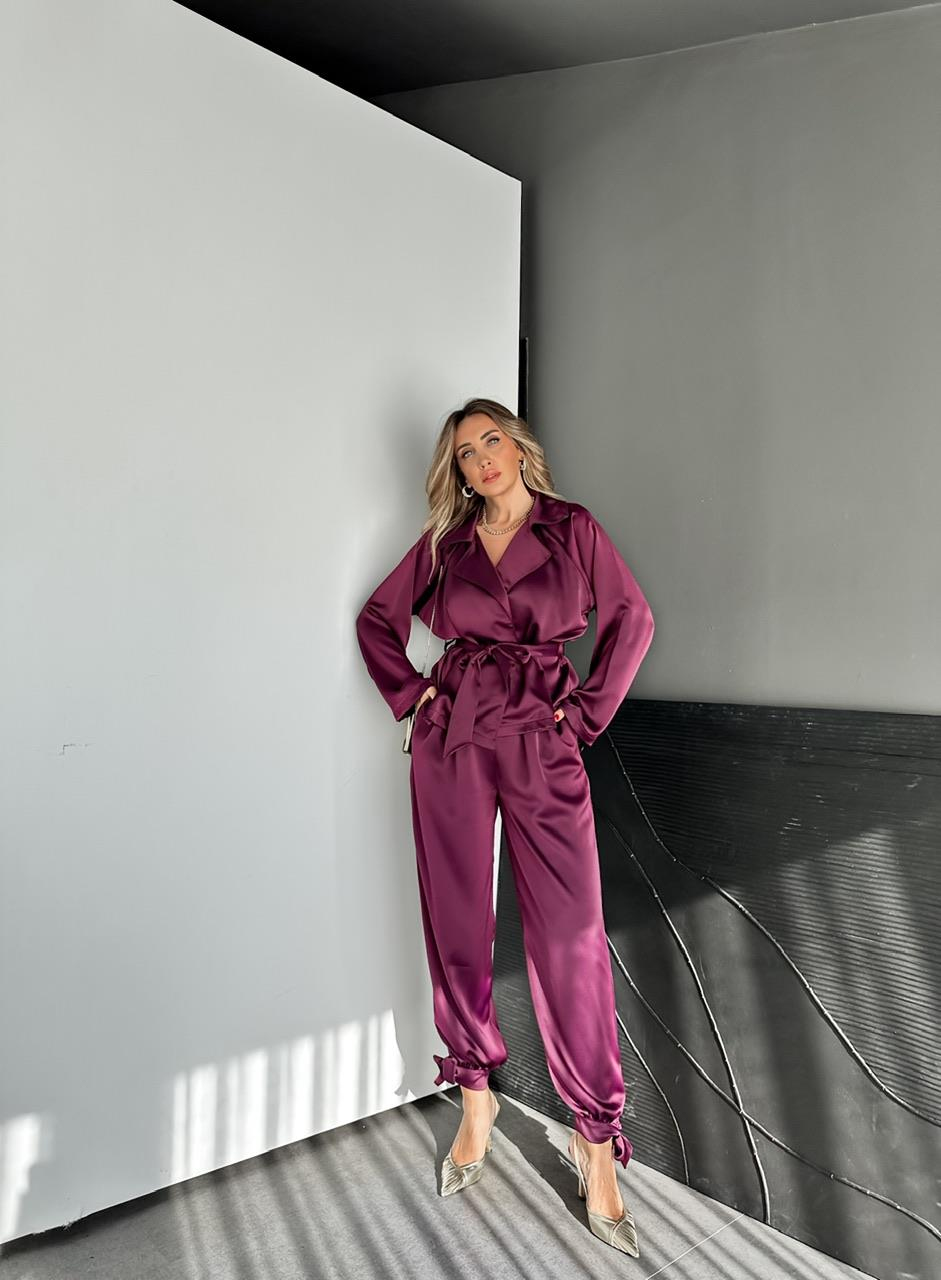 Mürdüm Bağlamalı Şalvar Saten Takım