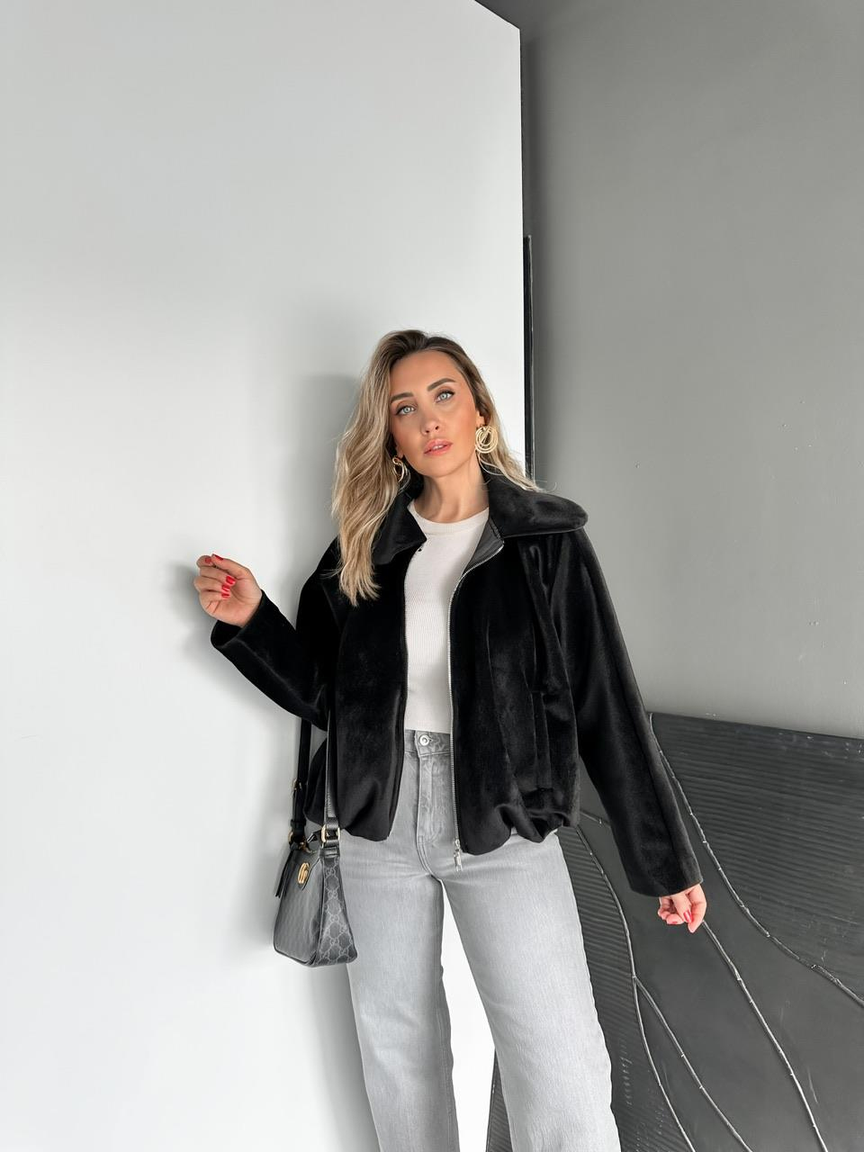 Siyah Deve Tüyü Bomber Mont