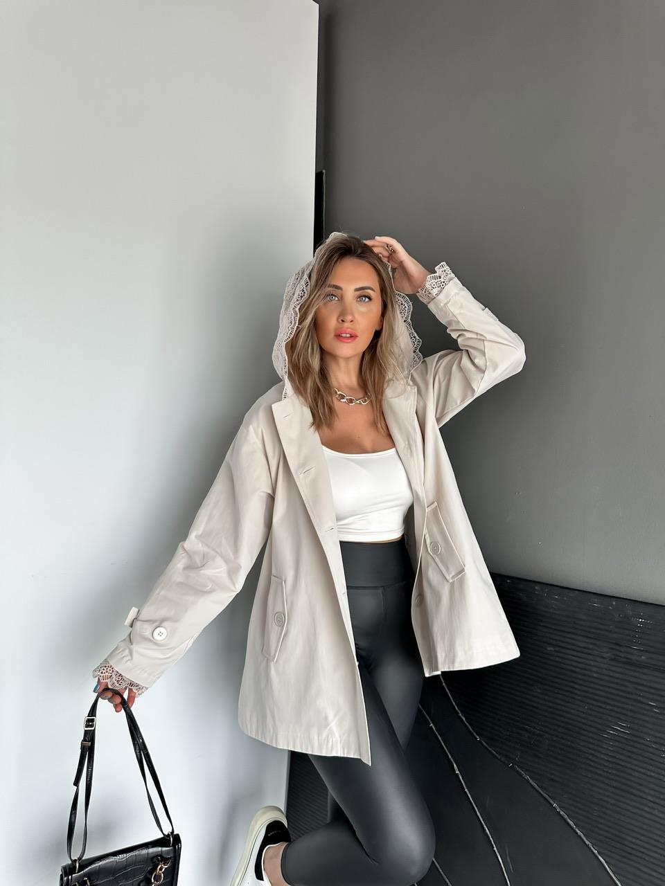 Taş Dantel Parçalı Trençkot